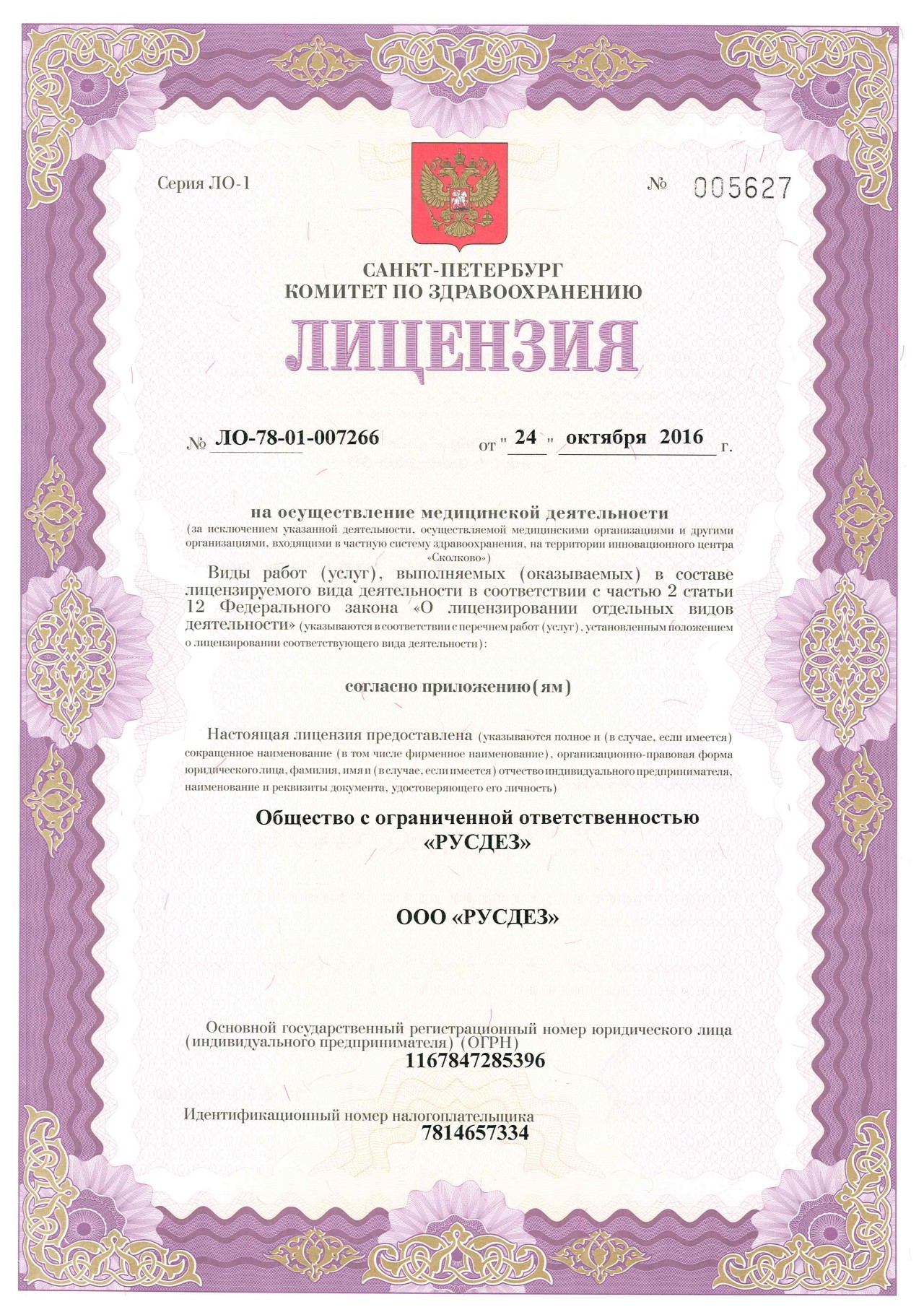 Регистрационный номер лицензии: На дезинсекцию-дезинфекцию и дератизацию: