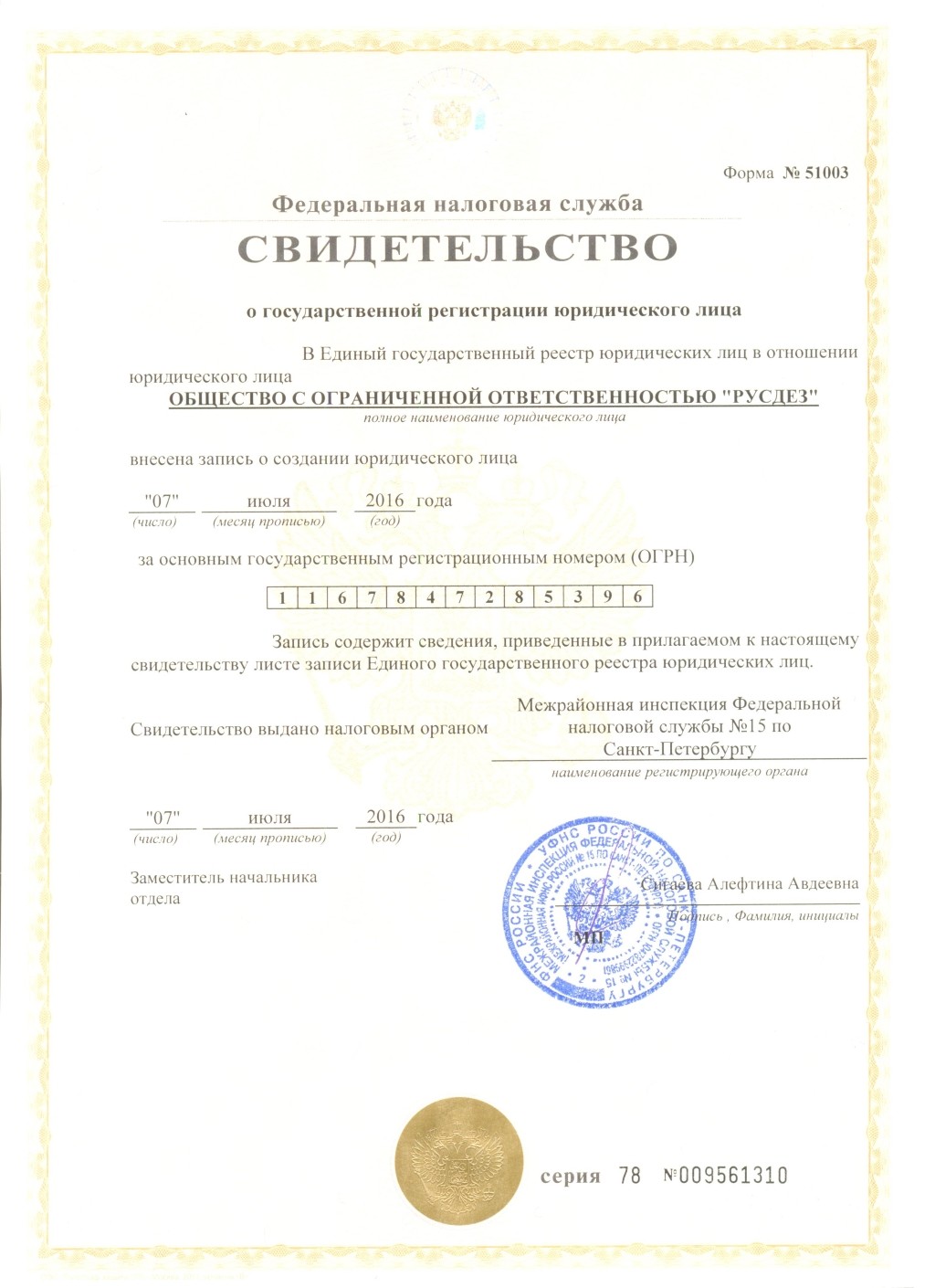 ООО «РУСДЕЗ», Юр.адрес: 197374, Санкт-Петербург, ул. Мебельная 12, корп. 1, пом. 3-Н, офис 205.;